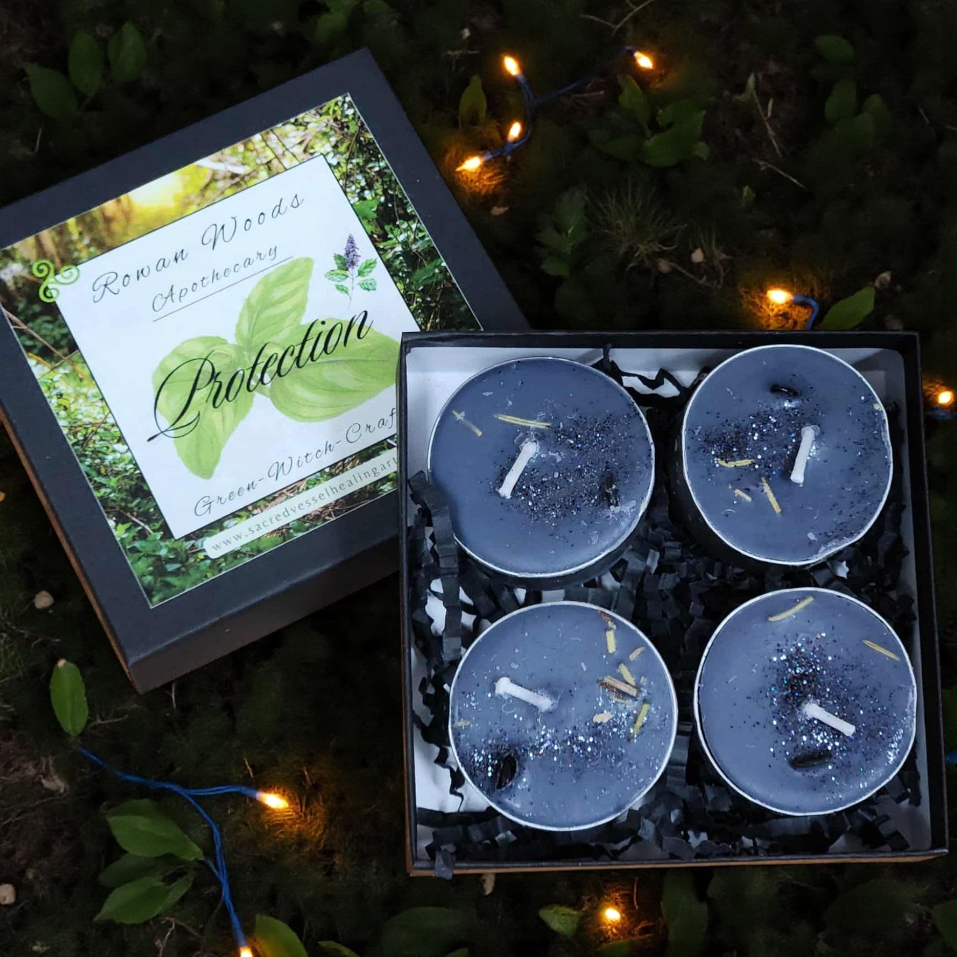 I have found Patchouli to be very protective, grounding, balancing and helps one to feel safe in their space and body. A touch of Basil helps to repel ill intent. Use these candles for added protection as you move through unknown territories. Light one and visualize yourself, your property, your business, your home, safe from ill will and harm.